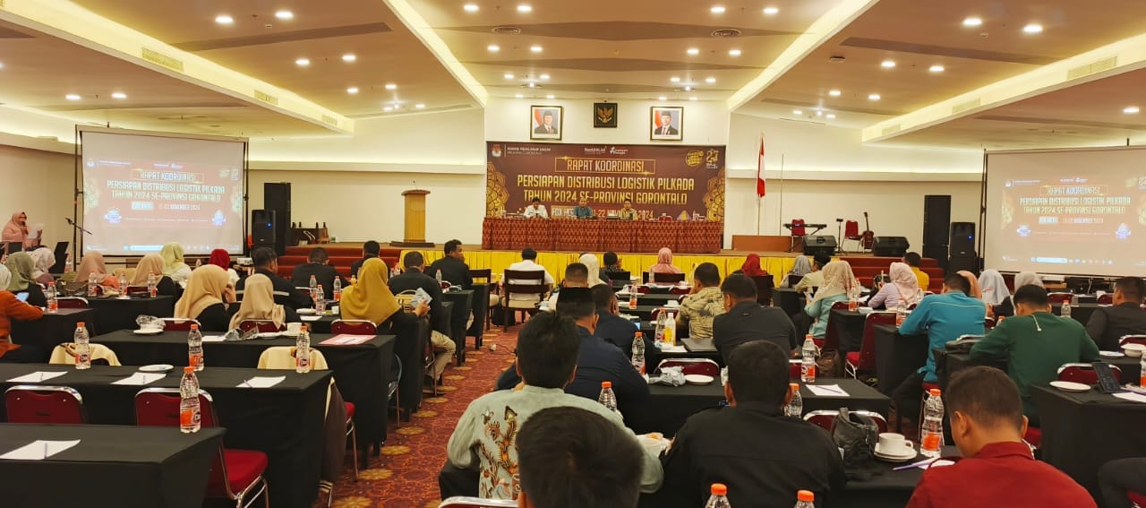 GORONTALO – Komisi pemilihan umum ( KPU) Provinsi Gorontalo menggelar Rapat Koordinasi persiapan distribusi logistik pilkada tahun 2024 se Provinsi Gorontalo