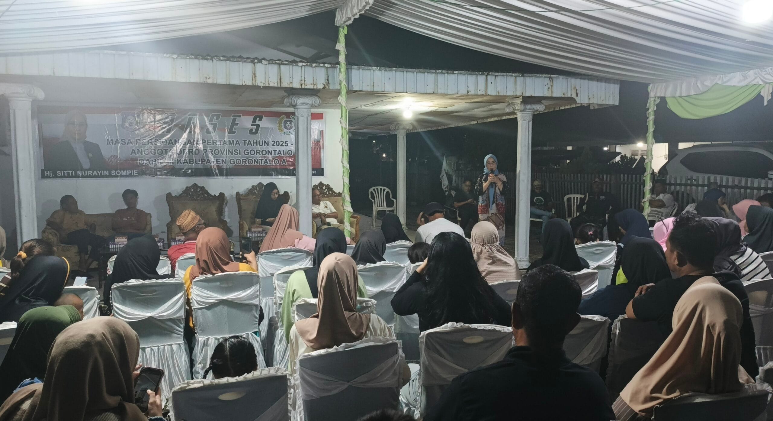 LIMBOTO — Anggota DPRD Provinsi Gorontalo dari Daerah Pemilihan (Dapil) Gorontalo III (Kabupaten Gorontalo A), Hj. Sitti Nurayin Sompie, melaksanakan reses masa persidangan pertama tahun 2025–2026 di Kelurahan Hutuo, Kecamatan Limboto, Selasa (22/10/2025).
